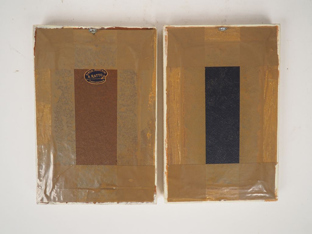 Achille LAUGE. 'Petit bouquet de roses en paire'. Paire de panneaux, vers 1920. Dim. 19 x 11,5 cm. Certificat de Nicole Tamburini.