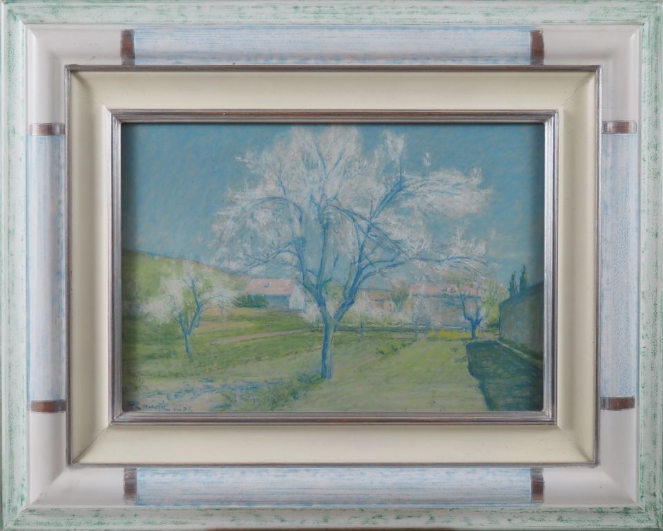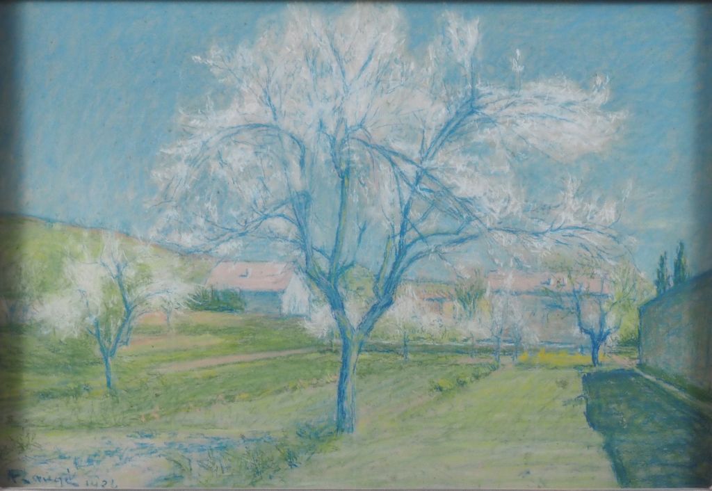 Achille LAUGE. "Verger en fleurs à Alet les Bains, Aude" Pastel, signé en bas à gauche et daté 1924 Dim. À vue : 38 x 55 cm Un certificat de Nicole Tamburini sera remis à l'acquéreur.