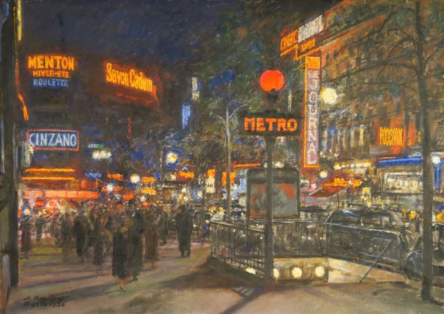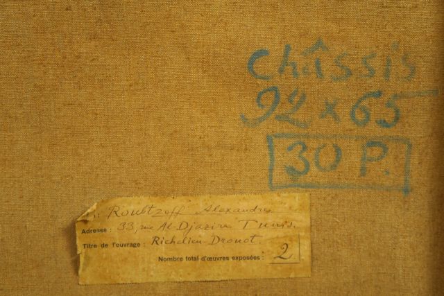 Alexandre ROUBTZOFF "Paris, Richelieu Drouot". Huile sur toile, signée et datée oct-nov 1936 en bas à gauche. Porte un numéro d'inventaire au dos 65 x 92 cm