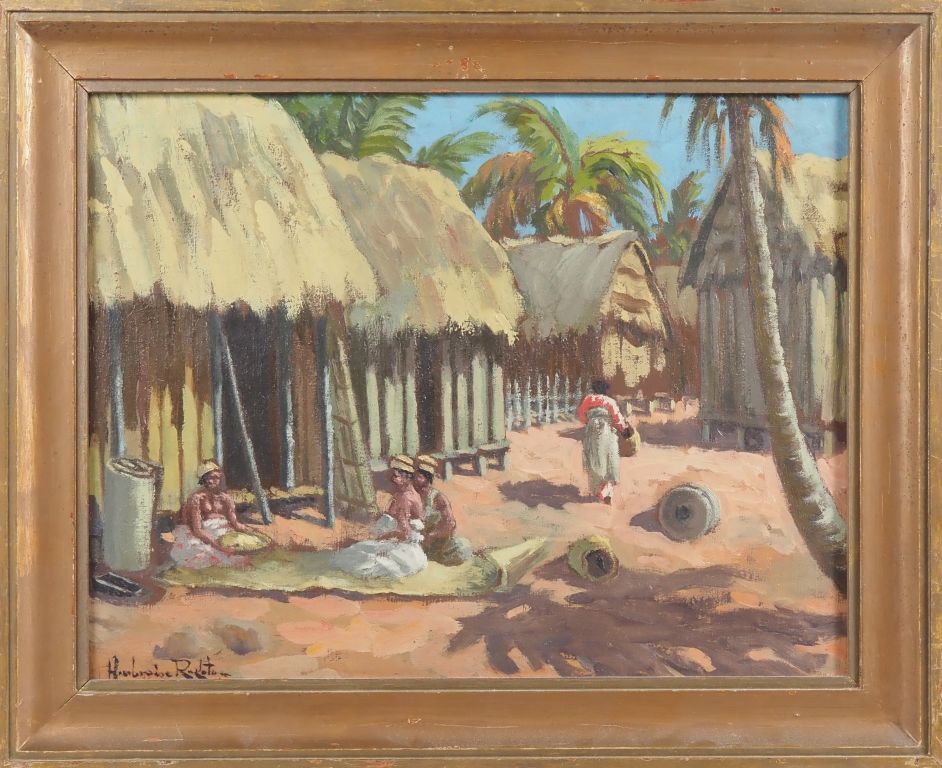 Ambroise RAKOTO. "village malgache animé" Huile sur toile, signée en bas à gauche et datée Dim. 35,5 x 45,5 cm