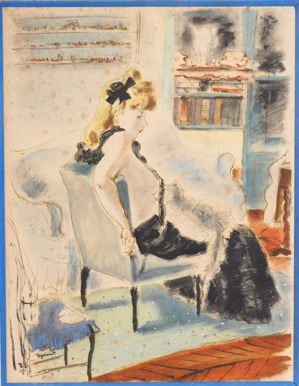 André DIGNIMONT. "Elegante et son chat". Aquarelle, signée en bas à gauche. Dim. 29 x 22,5 cm.