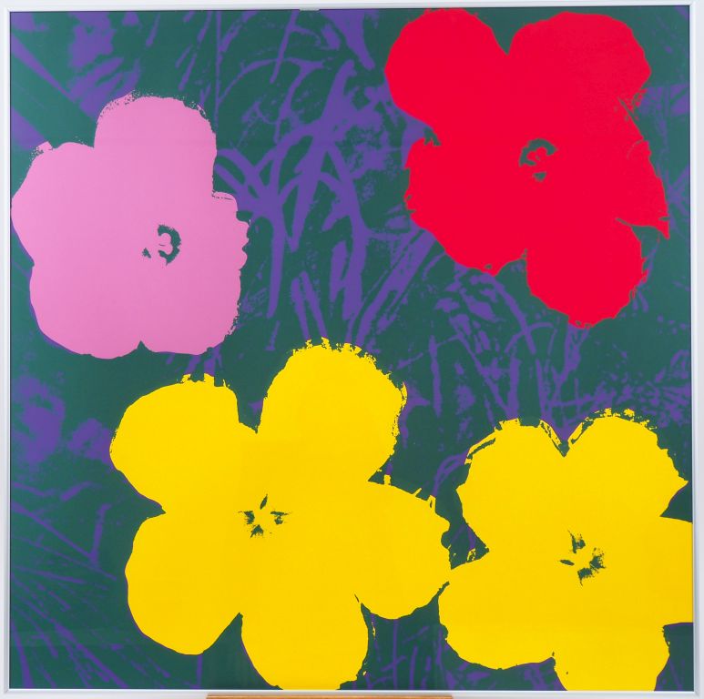 Andy WARHOL. "Fleurs". Impression en couleur. Published by Sunday by Morning. Dim. 90 x 90 cm.
