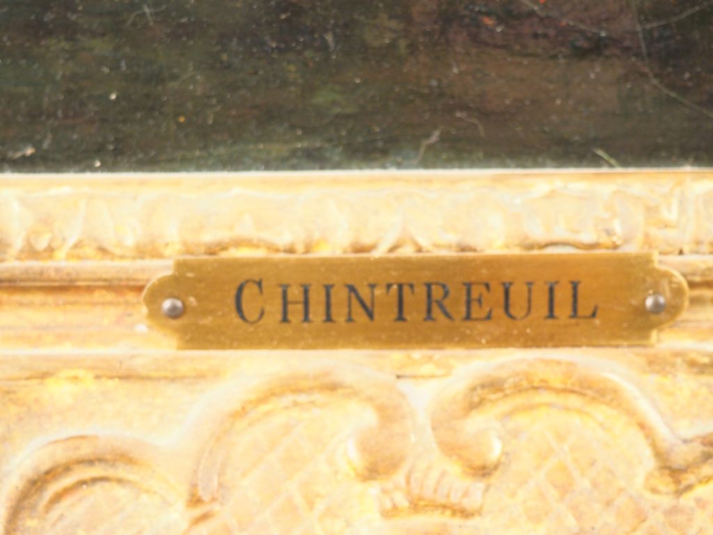 Antoine CHINTREUIL. (Attribué à). "Enfants au bord de la rivière". Huile sur toile, signée dans un cartouche. Provenance Galerie Michel à Vichy Dim : 27 x 41 cm. (craquelures).