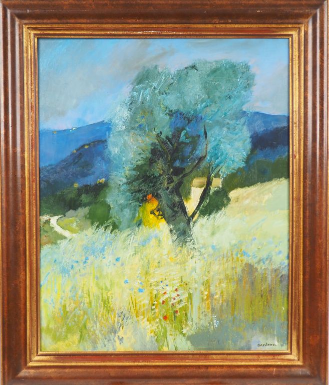 BARDONE. "Ciel d'orage à l'olivier, Bandol". Huile sur toile signée en bas à droite Dim. 81,5 x 65 cm