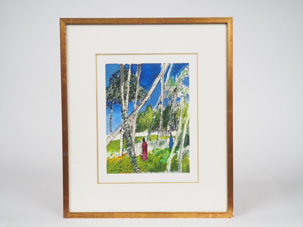 BARDONE "Femme dans la clairière à Ceylan" Aquarelle signée en bas à gauche Dim.19 x 14,5 cm