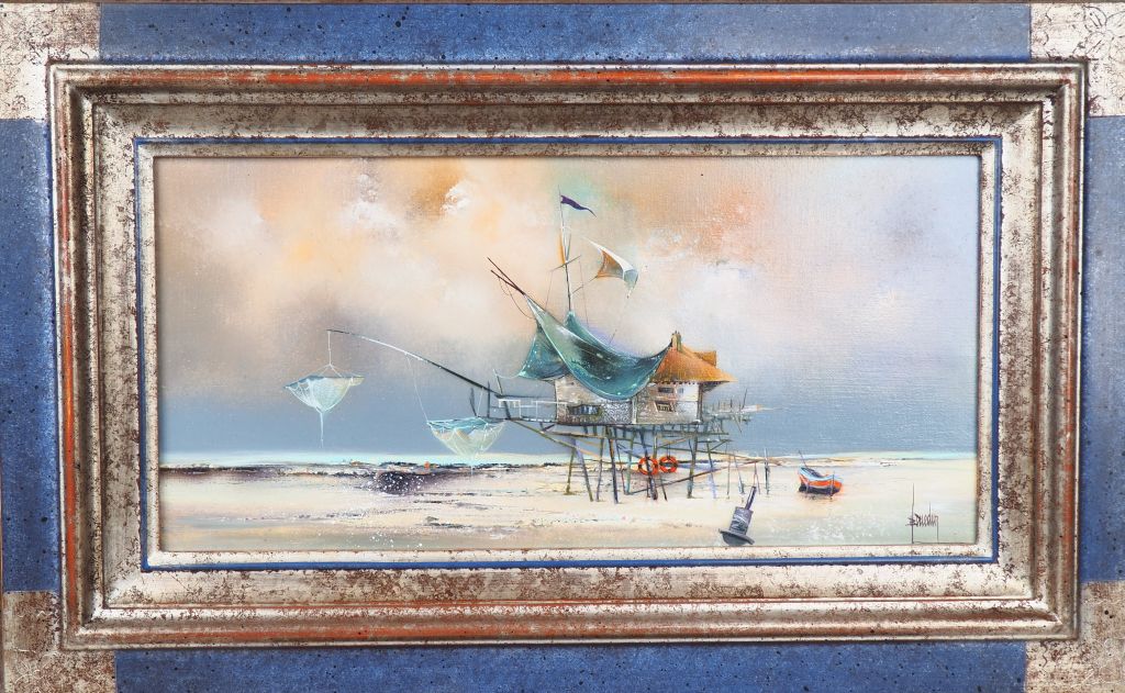 Lot de Bernard LOUEDIN. "la pêcherie". Huile sur toile, signée en bas à droi au prix de 200 à 300 € en vente aux enchères par l'hôtel des ventes Primardeco