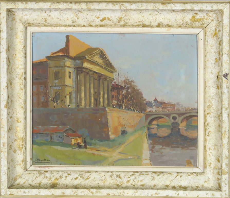 BERTOIN "Toulouse, la Daurade et le Pont Neuf" Huile sur panneau (double face). Signée en bas à gauche. 33 x 41 cm