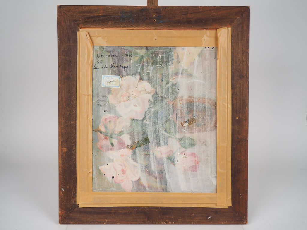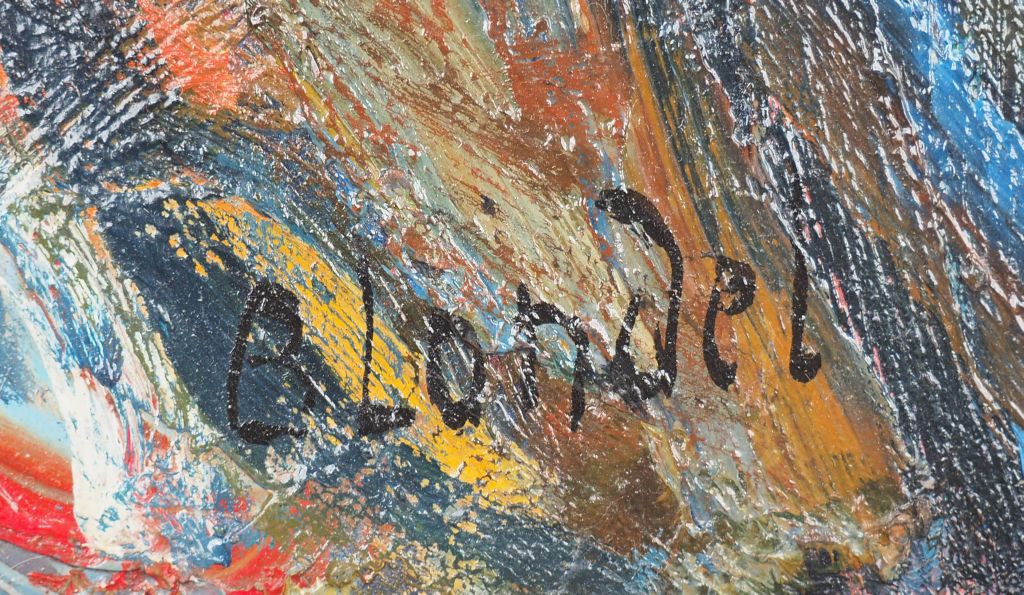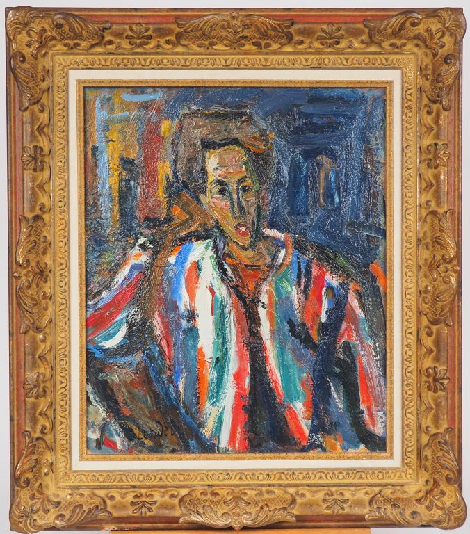 BLONDEL"Lisou à la blouse rayée" Huile sur panneau, signée en bas à gauche Dim. 45 x 37cm