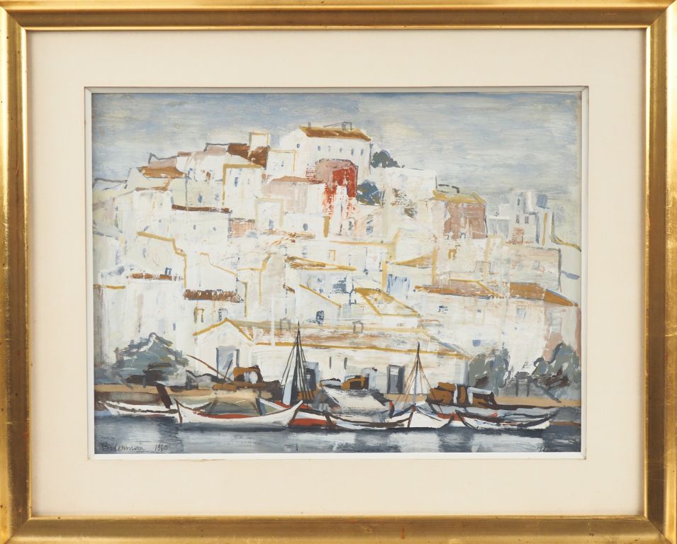 Lot de BOKERMANN. "Ibiza". Gouache signée en bas à gauche et datée 1960. Dim. au prix de 150 à 200 € en vente aux enchères par l'hôtel des ventes Primardeco