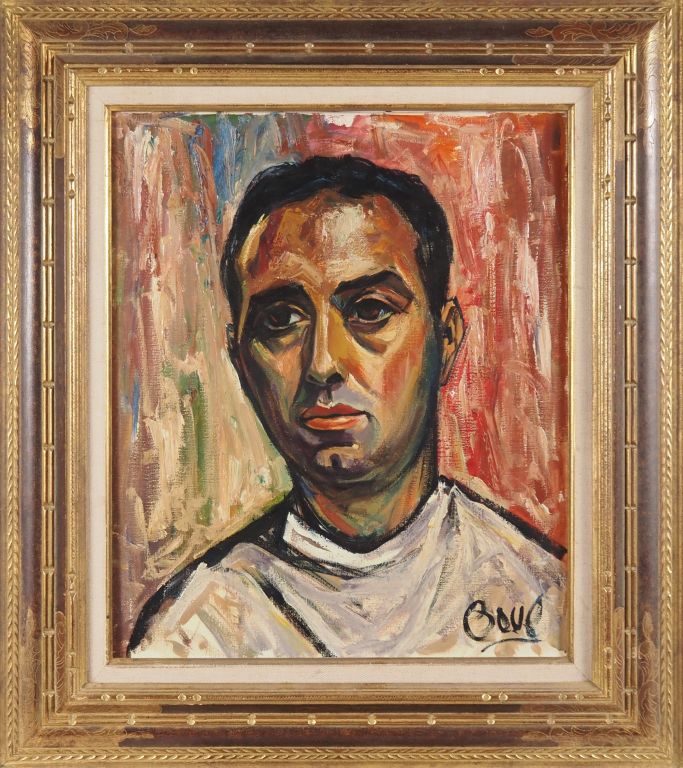 BOUE. "portrait de jeune homme brun" Huile sur toile, signée en bas à droite Dim. 55 x 46 cm
