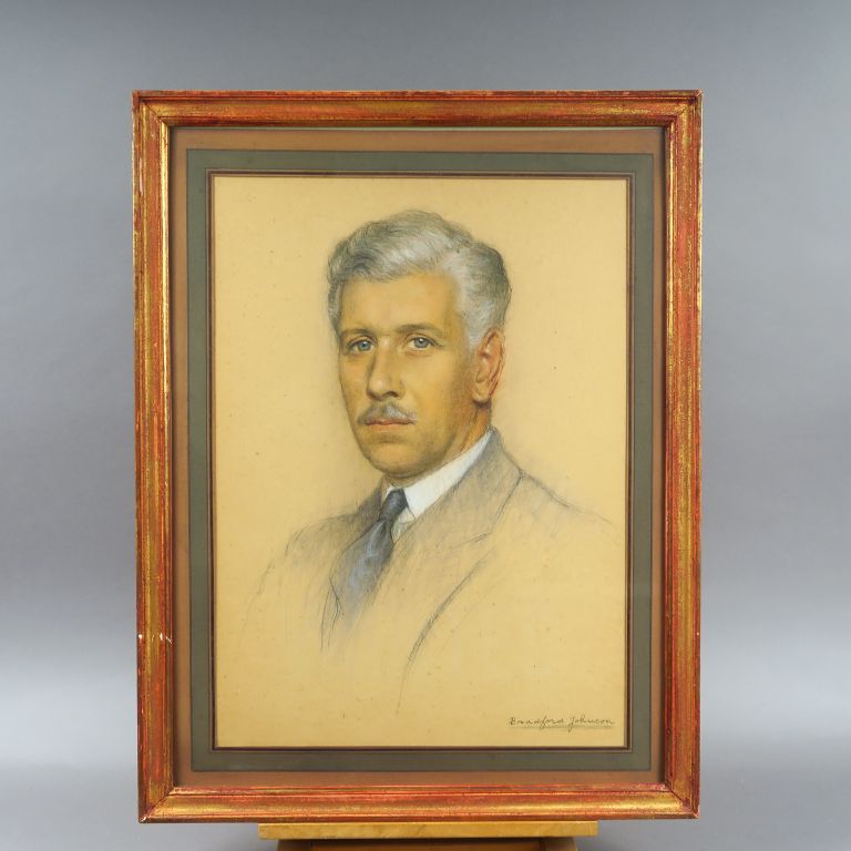 BRADFORD-JOHNSON. "Portrait d'homme à la moustache". Dessin, signé en bas à droite. Dim. 53,5 x 38,5 cm