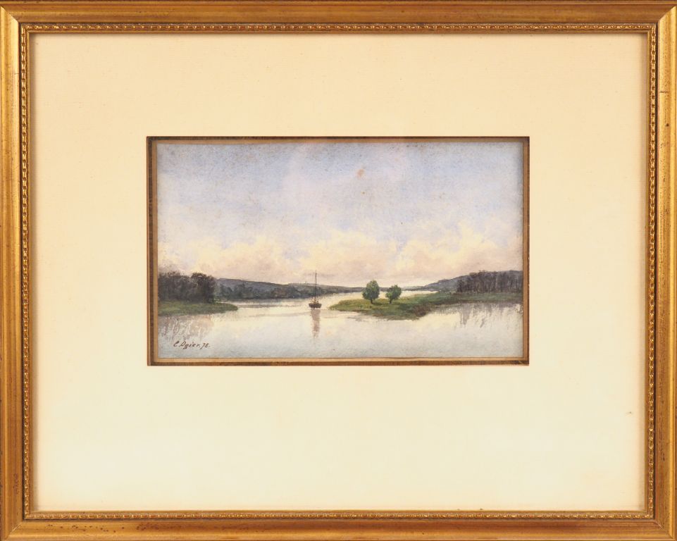 C. OGIER. "paysage lacustre" Aquarelle, signée en bas à gauche et datée 78 Dim. 15 x 25,5 cm