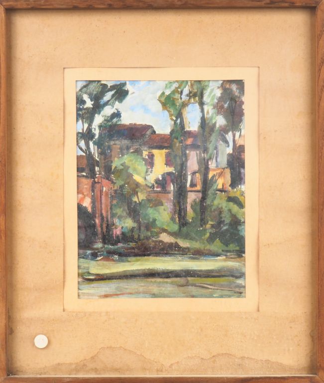 CARRERE. "Entrée de propriété". Gouache, signée en bas à gauche. Dim. (à vue) : 31 x 24 cm.