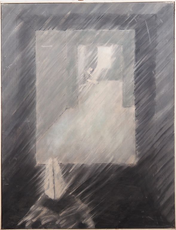 Césare PEVERELLI. "composition" Huile sur toile, signée en bas à droite et datée 63 Dim. 116,5 x 89,5 cm