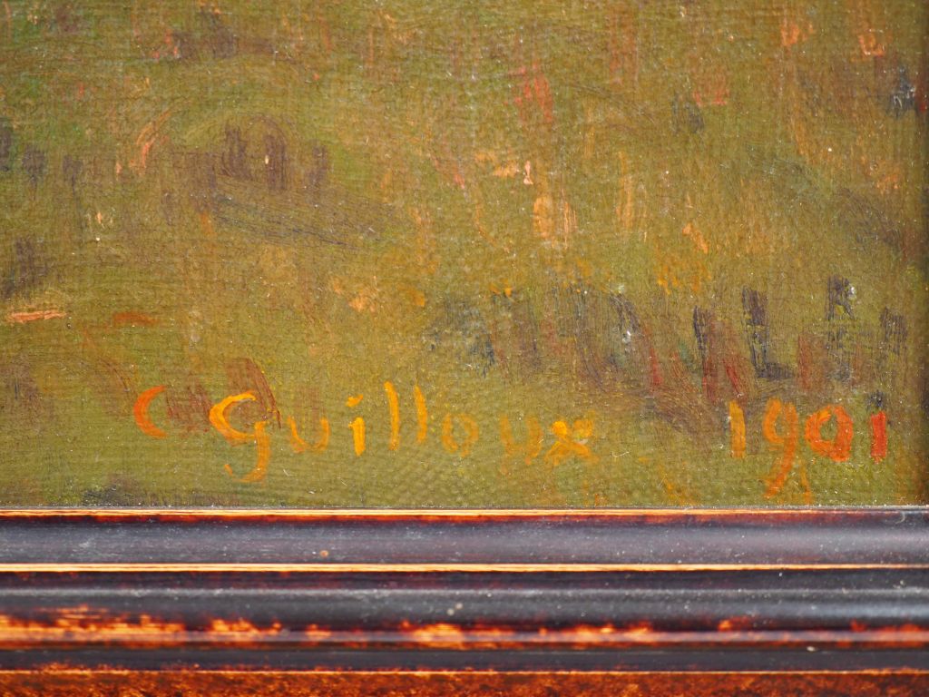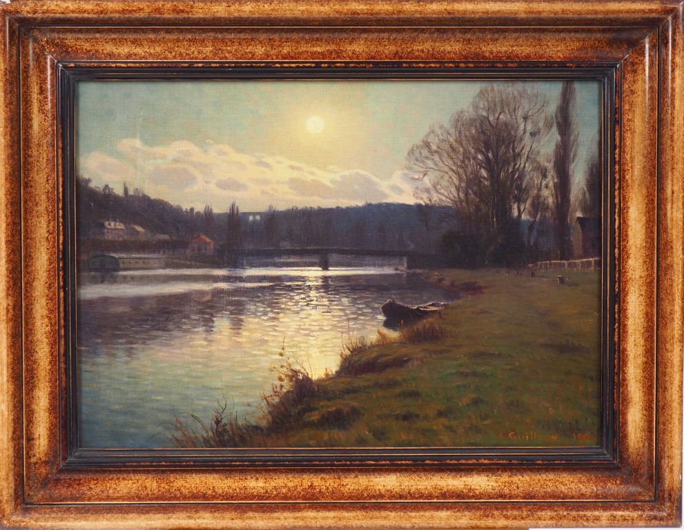 Ch. Victor GUILLOUX "Paysage au clair de lune" Huile sur toile. Signée en bas à droite et datée 1901. 33 x 46 cm