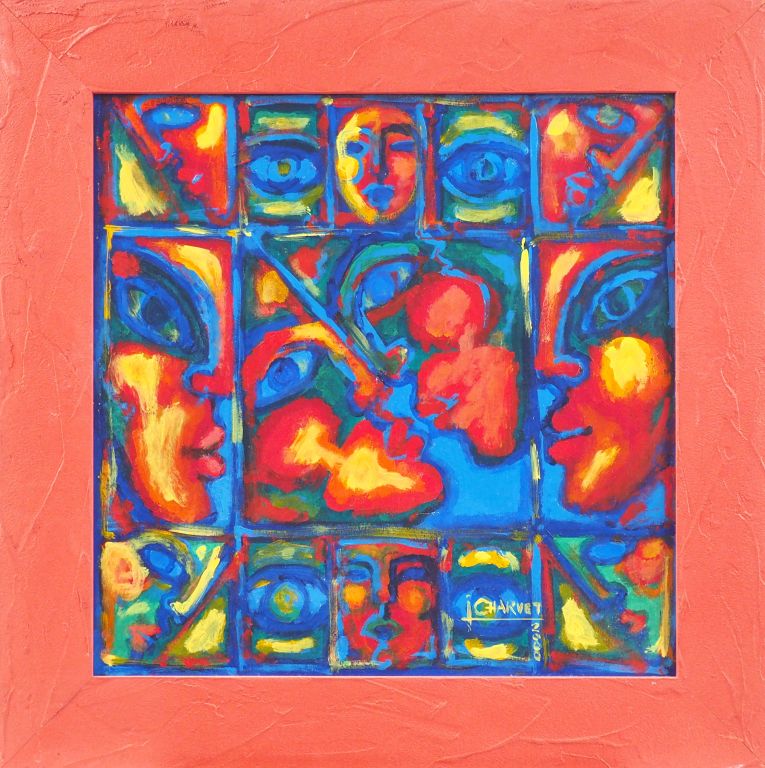 CHARVET. "Le baiser". Huile sur isorel, signée et datée 2000 en bas à droite. Dim. 39,5 x 41 cm.