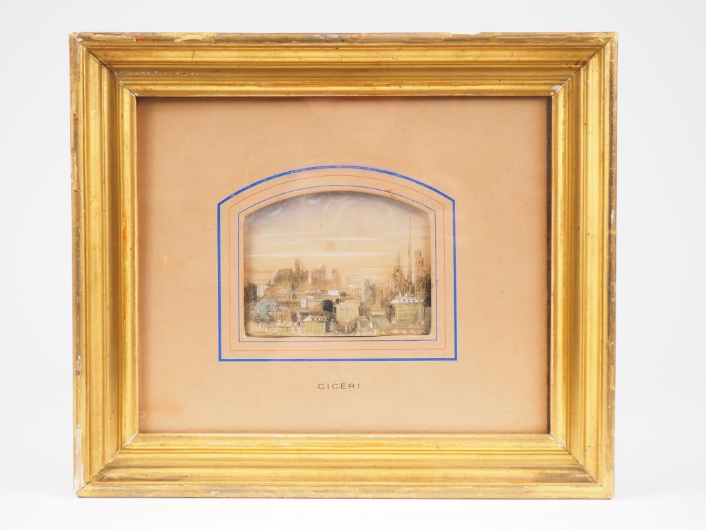 CICÉRI. 'Vue de ville'. Aquarelle, signée en bas à gauche. Dim. : 7 x ...