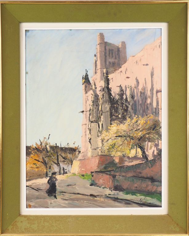 Claude BILS. "Albi, la cathédrale" Huile sur carton, signée en bas à droite et datée 1940 Dim. 61 x 46,5 cm