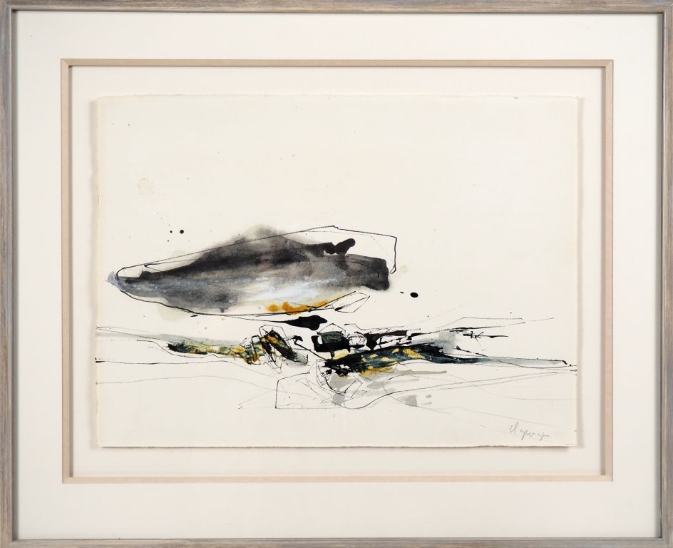 Claude GEORGES. "composition" Encre aquarellée signée en bas à droite Dim. 28,5 x 39,5 cm