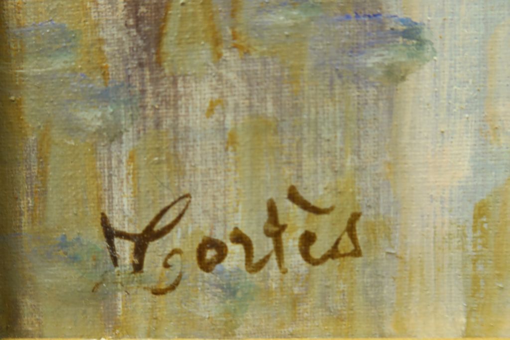 CORTES. "Place animée à Paris". Huile sur toile, signée en bas à gauche. Dim. : 46,5 x 55 cm.