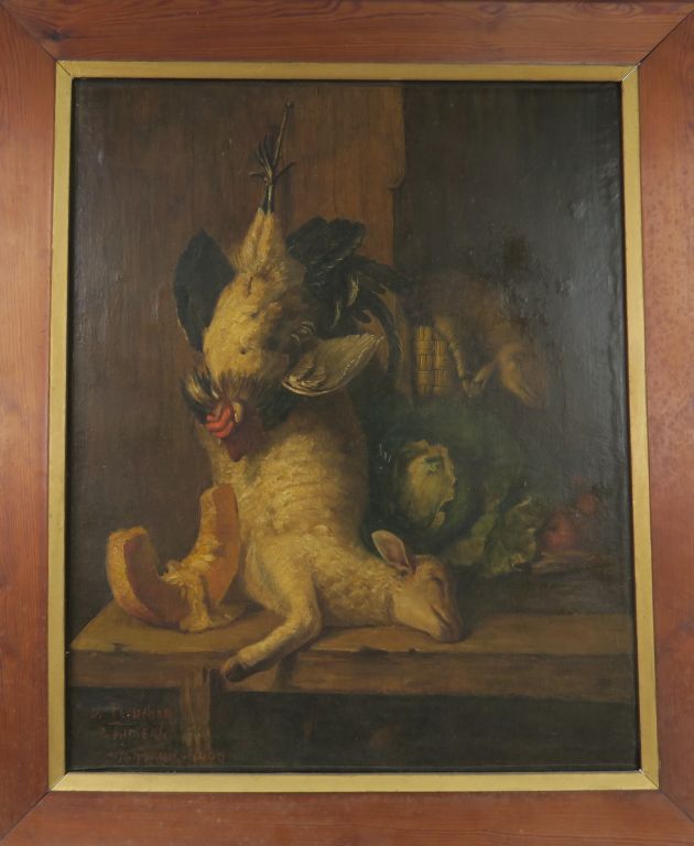 D. PERACHON. "Nature morte". Huile sur toile, signée en bas à gauche et datée 1909. Dim. 85,5 x 70 cm.