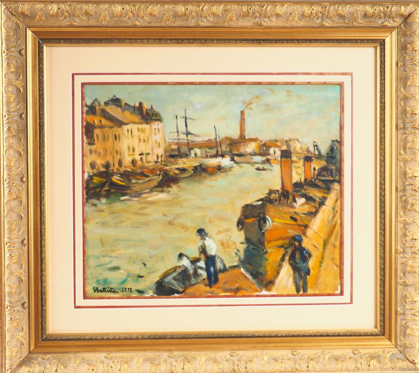 E. BATTISTA. "Sète". Huile sur papier signée et titrée en bas à gauche. Dim. À vue : 37 x 45 cm.