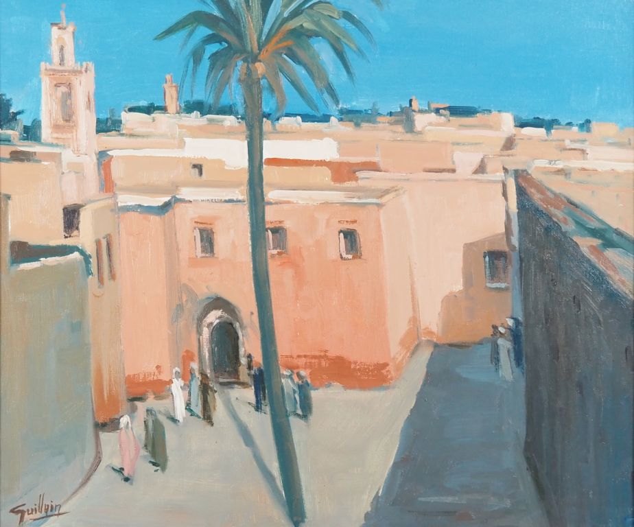 E. GUILLAIN 'Les terrasses à Marrakech'.Huile sur toile, signée en bas à droite, 54 x 65 cm