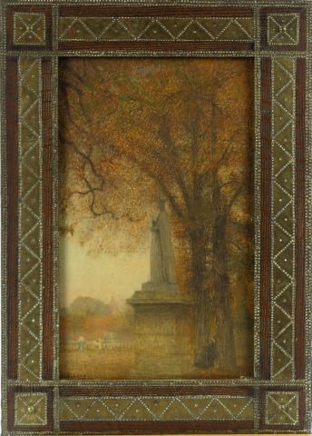 E. LOUP "Le jardin du Luxembourg". Huile sur carton, signée en bas à gauche. 36,5 x 22 cm