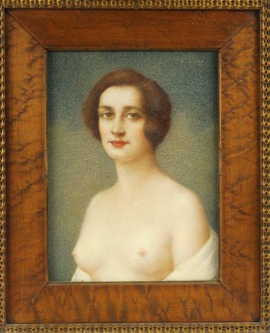 E. LOUP "Portrait de femme nue". Huile sur papier marouflé sur toile, signée en haut à droite. (petit accident). 32,5 x 24 cm