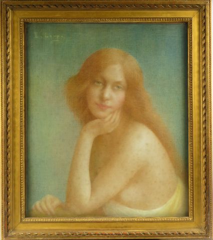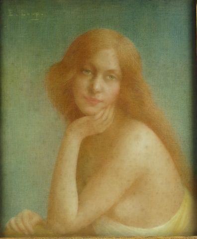 E. LOUP "Portrait de jeune femme rousse". Pastel, signé en haut à gauche. 62 x 54 cm
