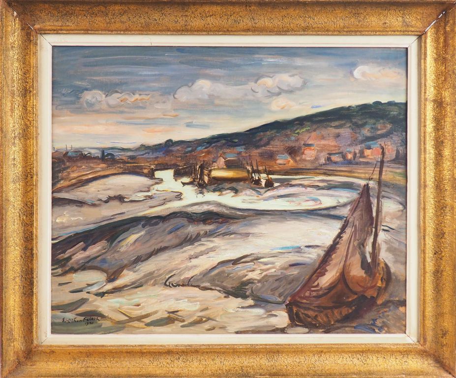 E. OTHON-FRIESZ "Embouchure de la Touques" Huile sur toile, signée en bas à gauche et datée 1945 Dim. 65 x 81 cm