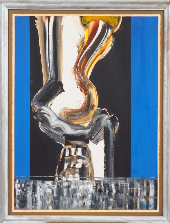 Ecole américaine contemporaine. "The Great Snake". Huile sur isorel, signée en bas à droite et titrée au dos. Dim. 80 x 61 cm.