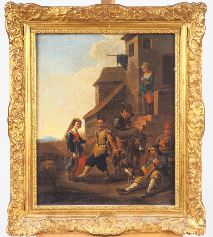 Ecole flamande XVIIème (Jean MIEL (attribué à). "Fête de village". Huile sur toile. Dim. 38 x 31,5 cm