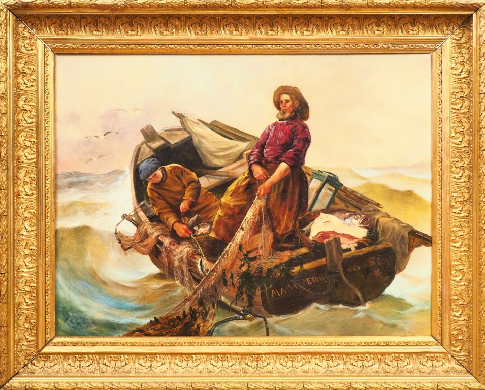 Ecole française début XXème. (Georges Jean Marie Haquette. Attribué à) "Marie étoile des mers" Huile sur toile. Dim. 70 x 95 cm. (Restauration).