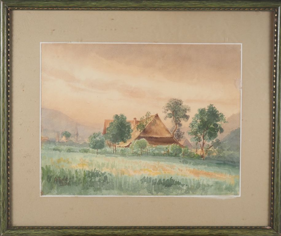 Ecole française début XXème. "maison au toit de chaume" Aquarelle, signée en bas à gauche Dim, à vue : 29 x 37,5 cm