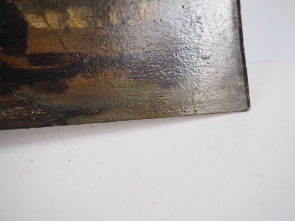 Ecole française fin XIXème - début XXème. "Le moulin" et "marine". 2 huiles sur carton, signées en bas à droite. Dim. 16 x 22 cm. Dim. 16 x 24 cm.