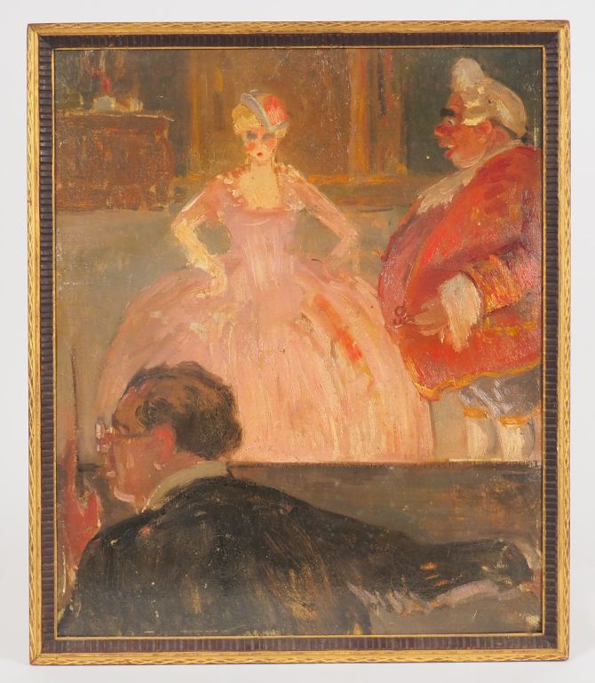 Ecole française fin XIXème début Xxème "personnages de théatre" Huile sur carton Dim. 44,5 x 37 cm