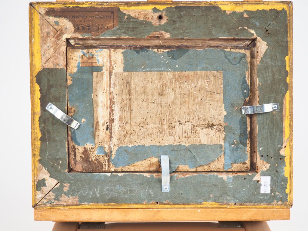 Ecole française ou italienne XIXème. "Paysage animé". Huile sur panneau. Dim. 15,5 x 22 cm.