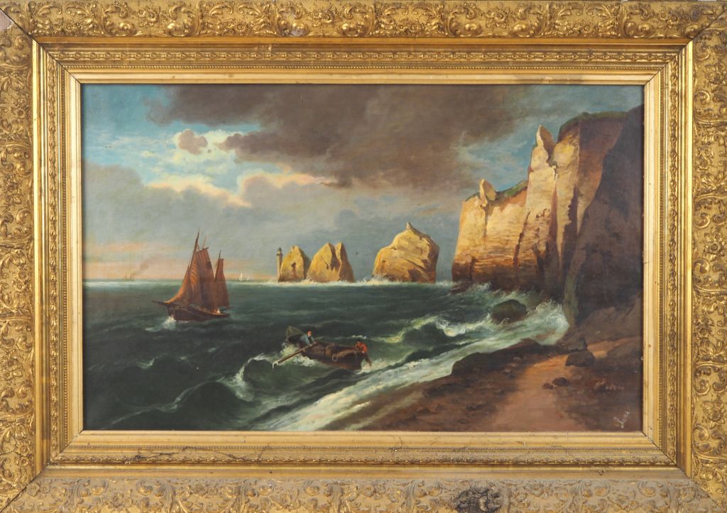 Ecole française XIXème. "Marine et paysage de bord de mer". Paire d'huiles sur toile Dim. 45 x 73 cm