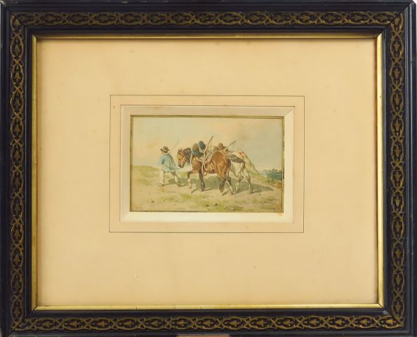 Ecole française XIXème "Paysan et son attelage" Aquarelle monogrammée en bas à gauche Th F Dim. 7 x 11,5 cm
