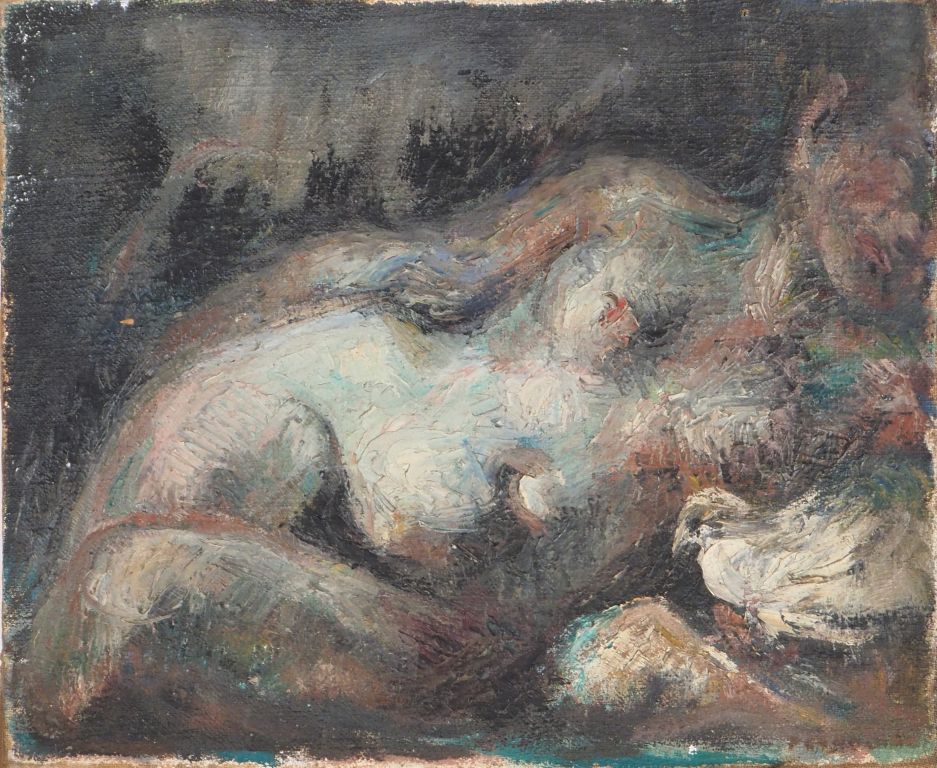 Ecole française XXème. "Composition". Huile sur toile, signée en bas à droite. Dim. 38 x 45,5 cm.