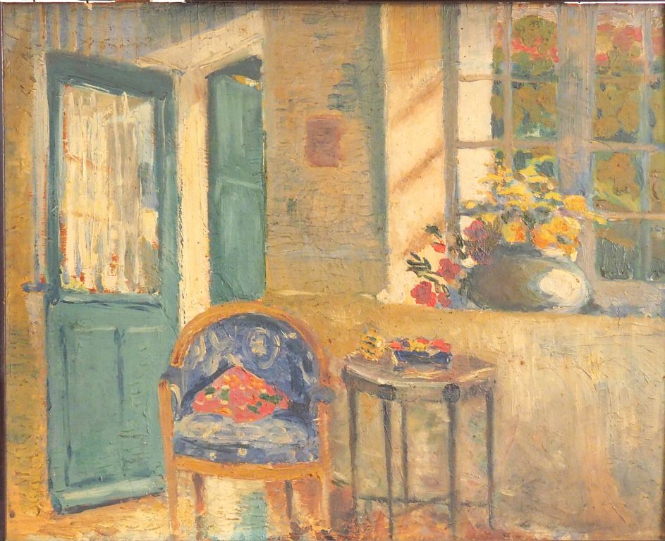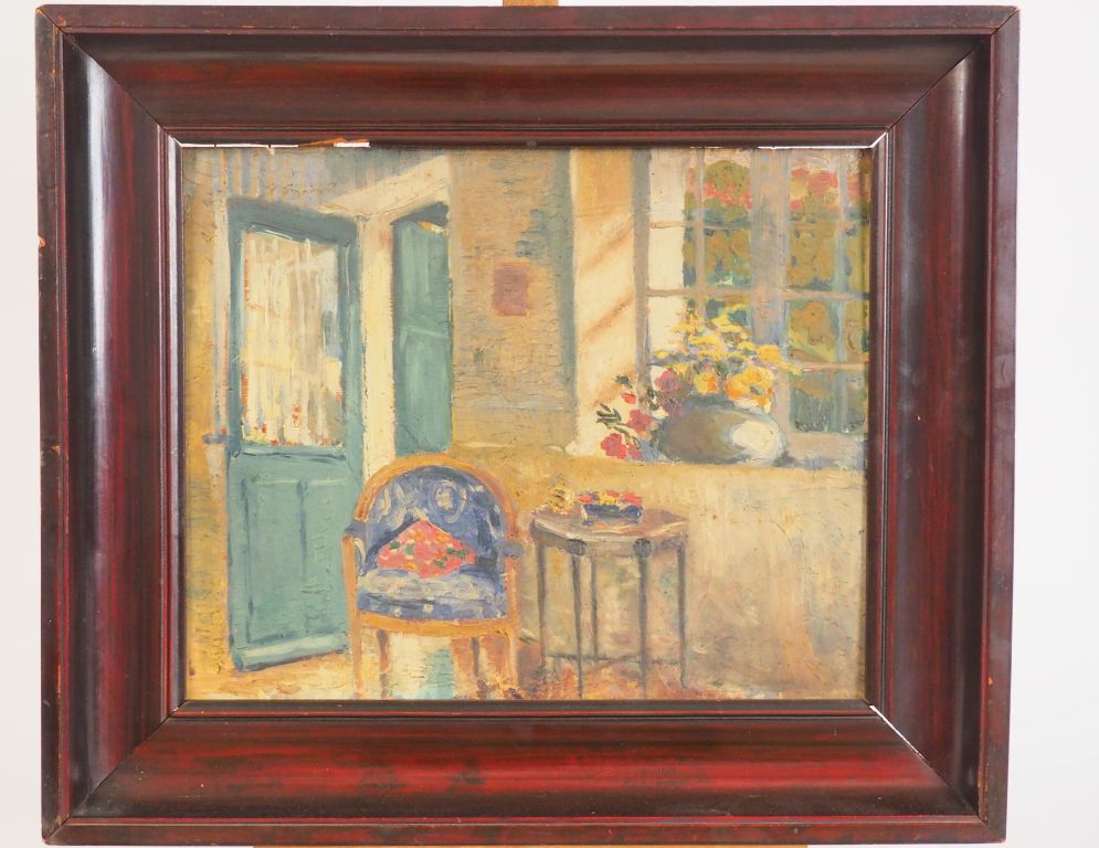 Ecole française Xxème "Intérieur" Huile sur panneau Dim. 32,5 x 41 cm