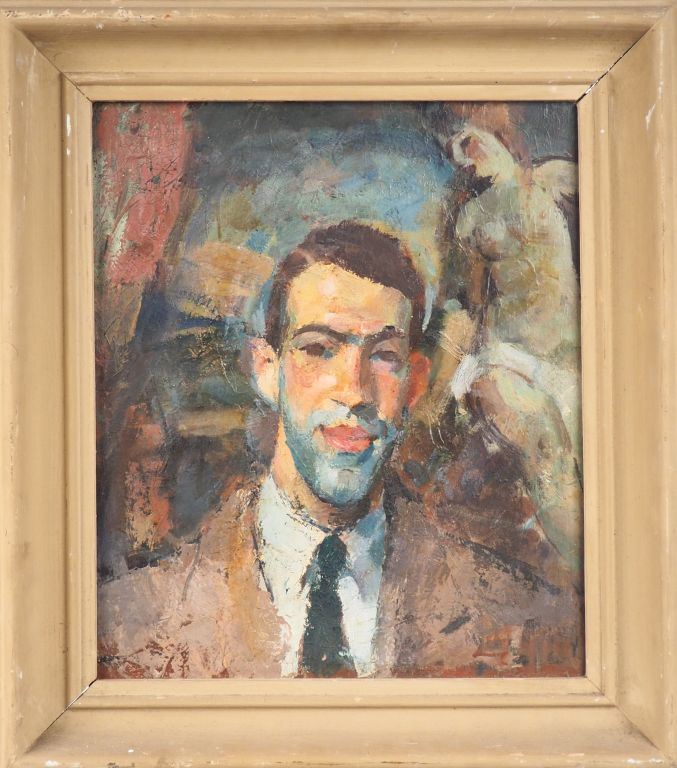 Ecole française XXème. "portrait d'homme" Huile sur carton, signée en bas à droite Dim. 45,5 x 39 cm