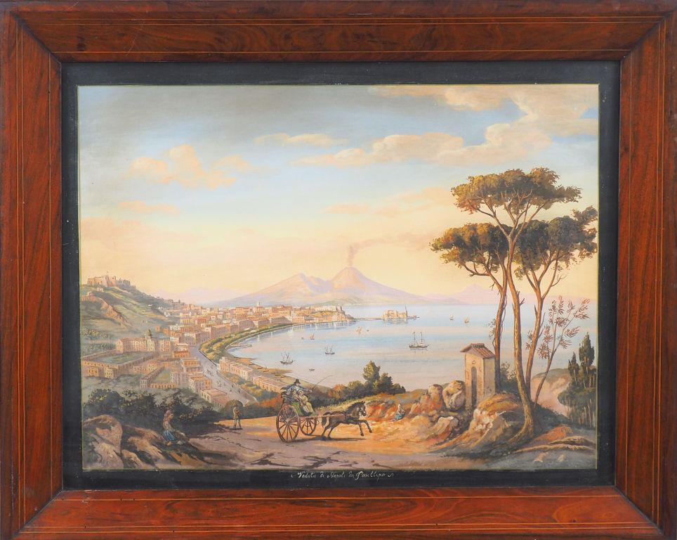 Ecole Napolitaine XIXème. "Vedute di Napoli da Posillipo". Aquarelle gouachée, titrée. Dim. (à vue) : 48 x 65 cm.