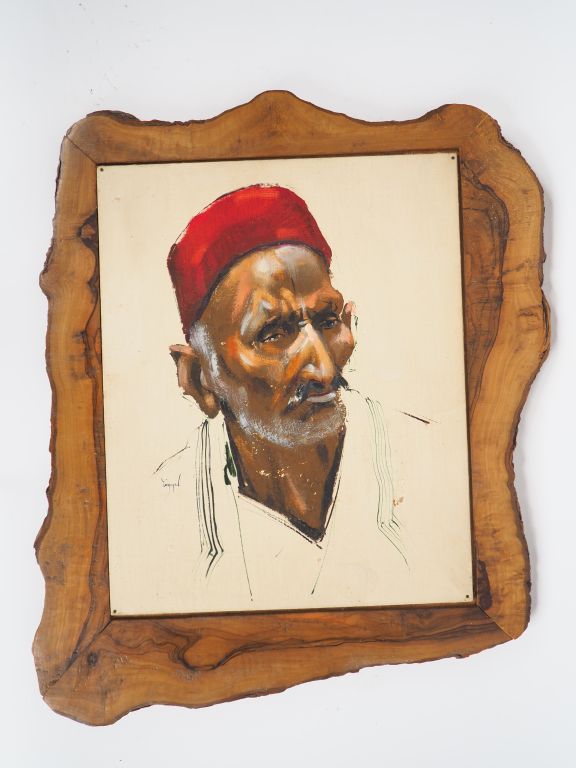 Ecole orientaliste XXème. "Portraits d'arabes". Paire d'huiles sur toiles marouflées. Dim. 41 x 33 cm.