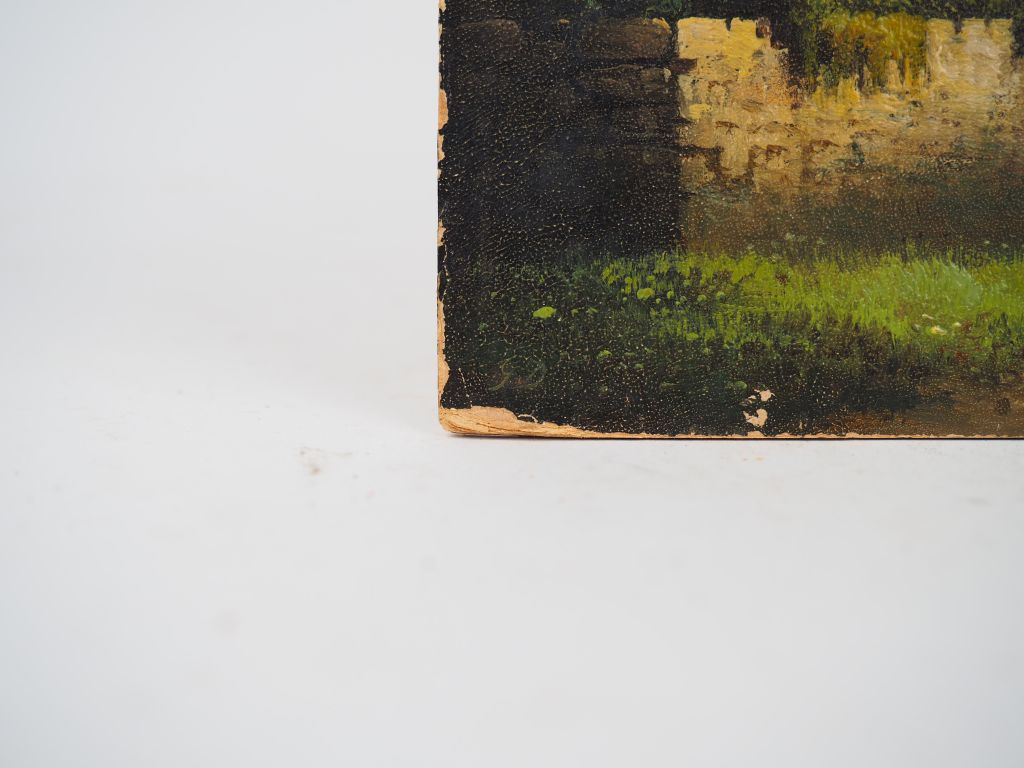 Ecole suisse XIXème "Ville au bord d'un lac de montagne" Huile sur carton, monogrammée GD en bas à gauche Dim. 23,4 x 31,9 cm