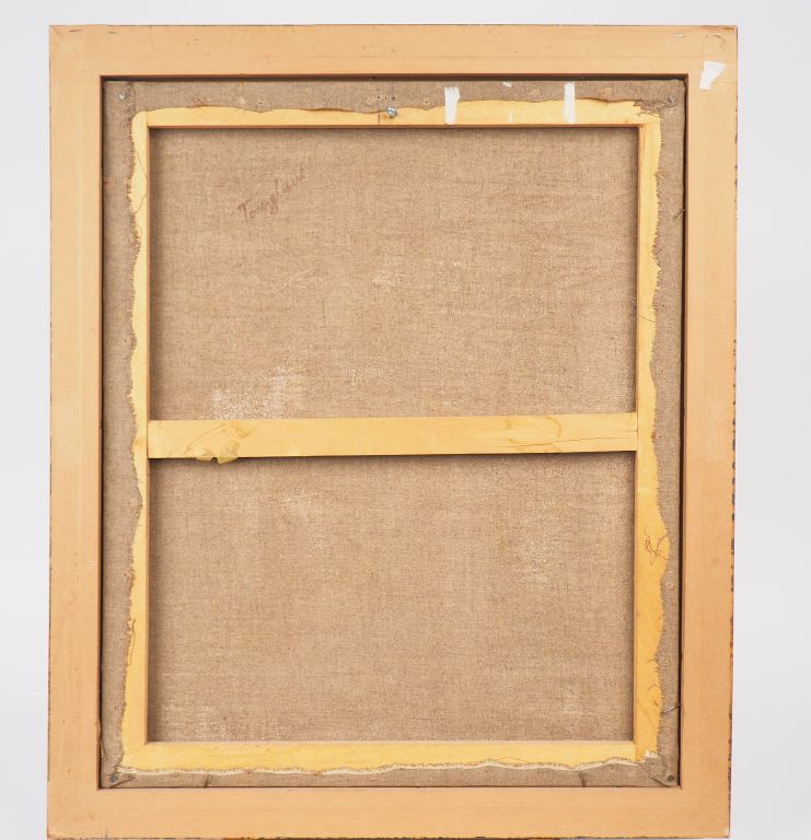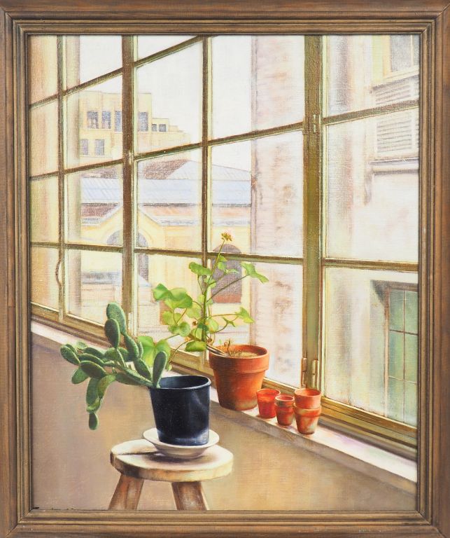 Ecole XXème "Nature morte aux plantes d'intérieur". Huile sur toile Dim. 60,5 x 49,5 cm