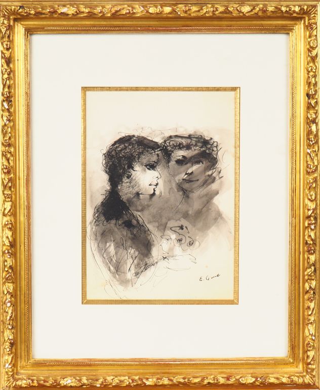 Edouard GOERG. "Couple de personnages". Dessin à l'encre, signé en bas à droite. Dim. 21 x 15 cm.
