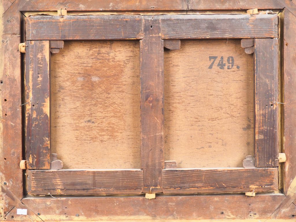 Edouard HOSTEIN. "Le repos des bergers dans la campagne". Huile sur toile, signée en bas à droite. Dim. 39 x 54 cm.