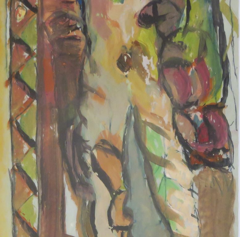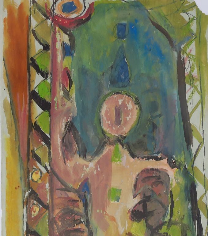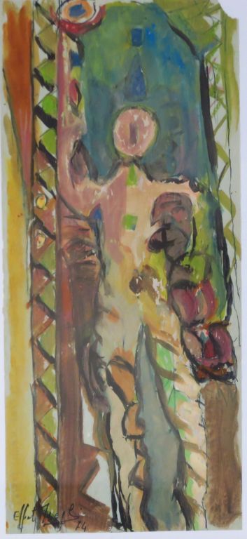 EFFAT NAGUI "Composition" Technique mixte sur papier. Signée en bas à gauche et datée 74. 27,5 x 12 cm (petite déchirure en haut à droite)